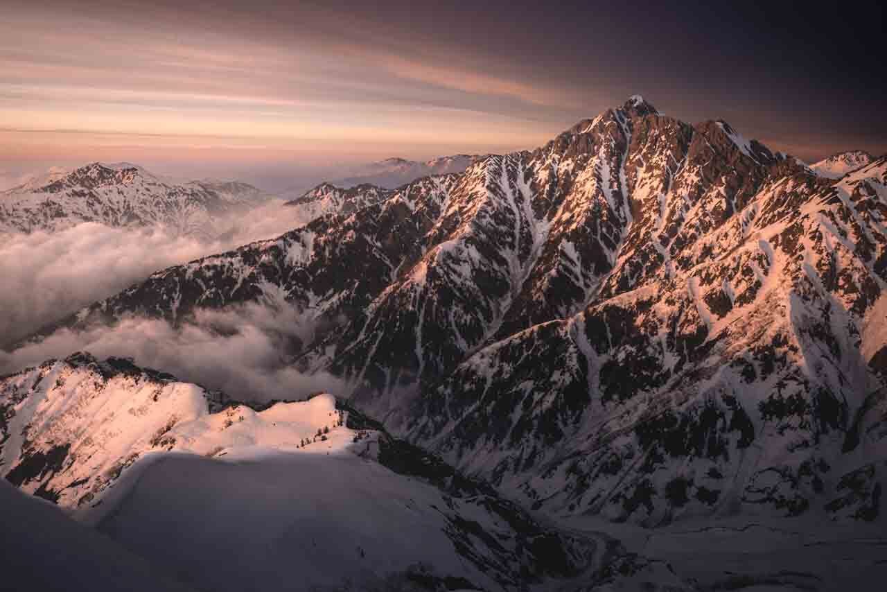 日の入り1時間前にガスが抜け、雲の隙間へ西日が差し込み